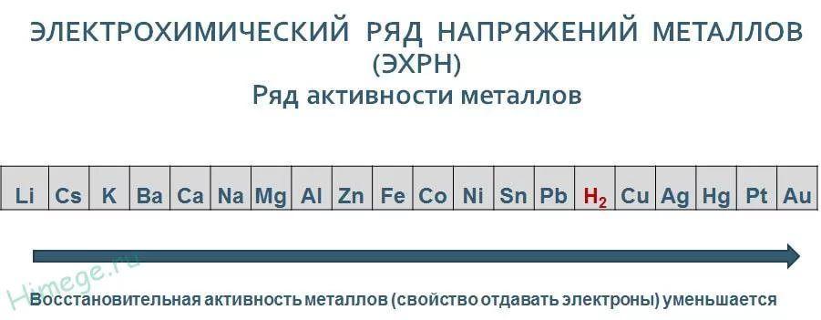 По ряду активности химических элементов определяем активность металлов. Слева от водорода находятся активные металлы. Чем левее металл - тем он активнее. После водорода (справа) - неактивные металлы. Чем правее - тем неактивнее. Золото - самый неактивный металл.