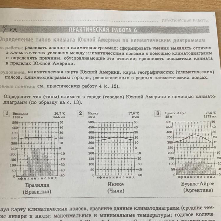 Определите тип (типы) климата в городе (городах) Южной Америки с помощью климато-