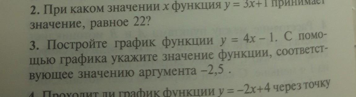 Ответ:Постройте график функции y=4x - 1 . С помощью графика укажите значение функции, соответствующее значению аргумента - 2,5.