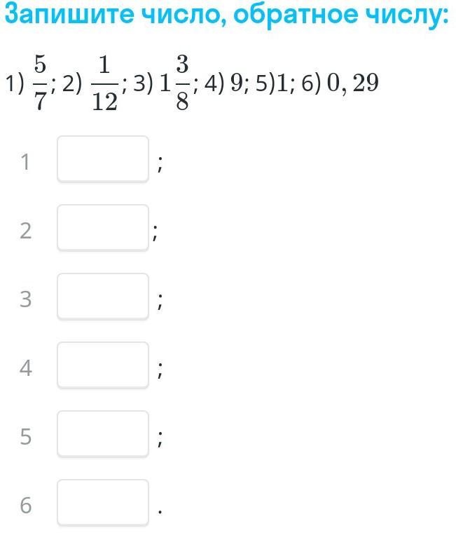 Обратное число дроби - это числитель и знаменатель, которые поменялись местами.