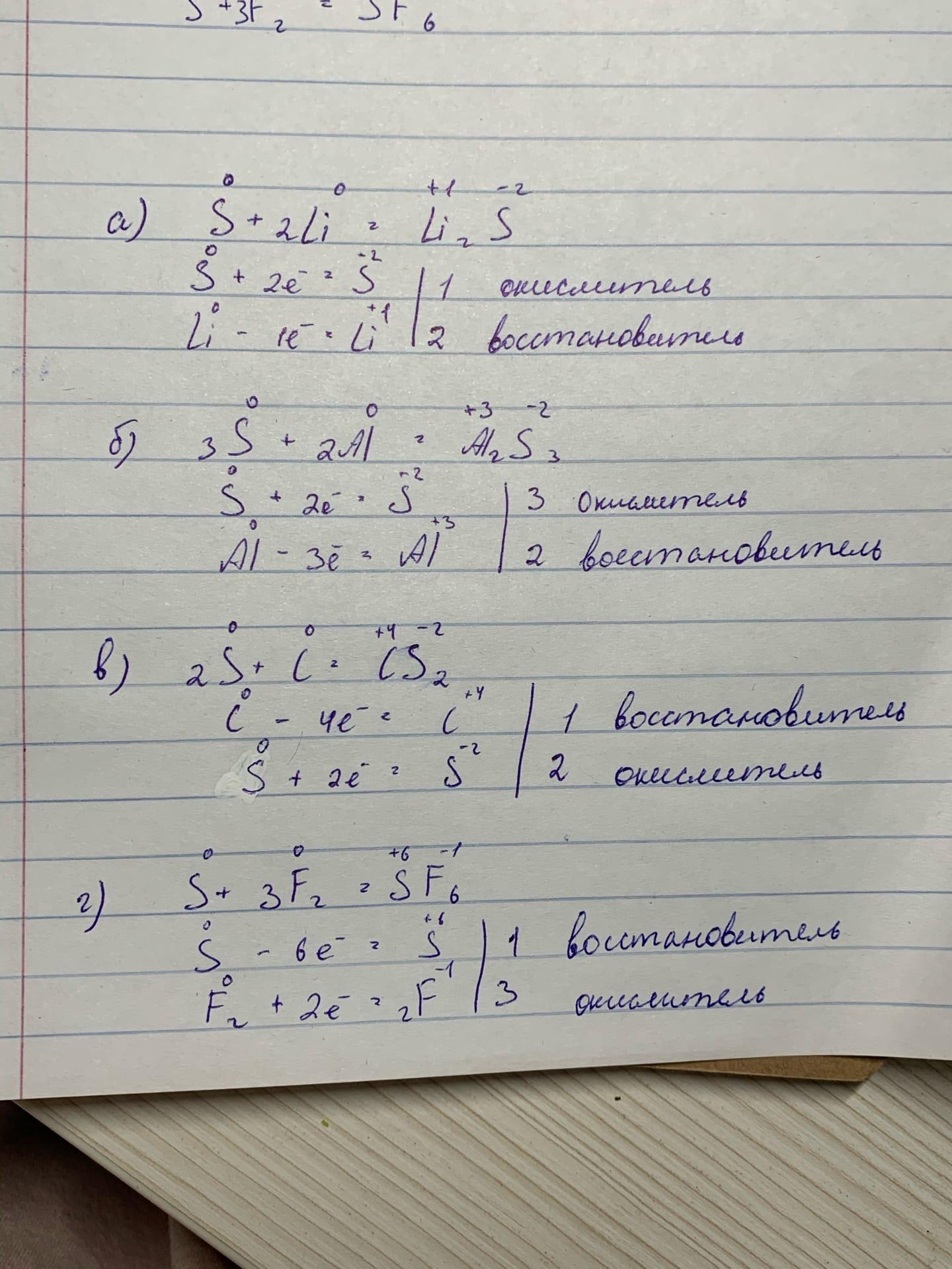 г)S + 3F2 = SF6 Реакция взаимодействия серы и фтора