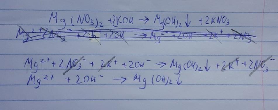 складіть молекулярне ,повне та скорочене йонне рівняння для взаємодії між магній нітратом та калій гідроксидом
