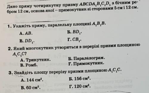 1) плоскости А₁В₁В перпендикулярна прямая СВ₁ (ответ Г)