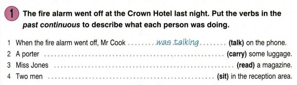 The fire alarm went off at the Crown Hotel last night. Put the verbs in the