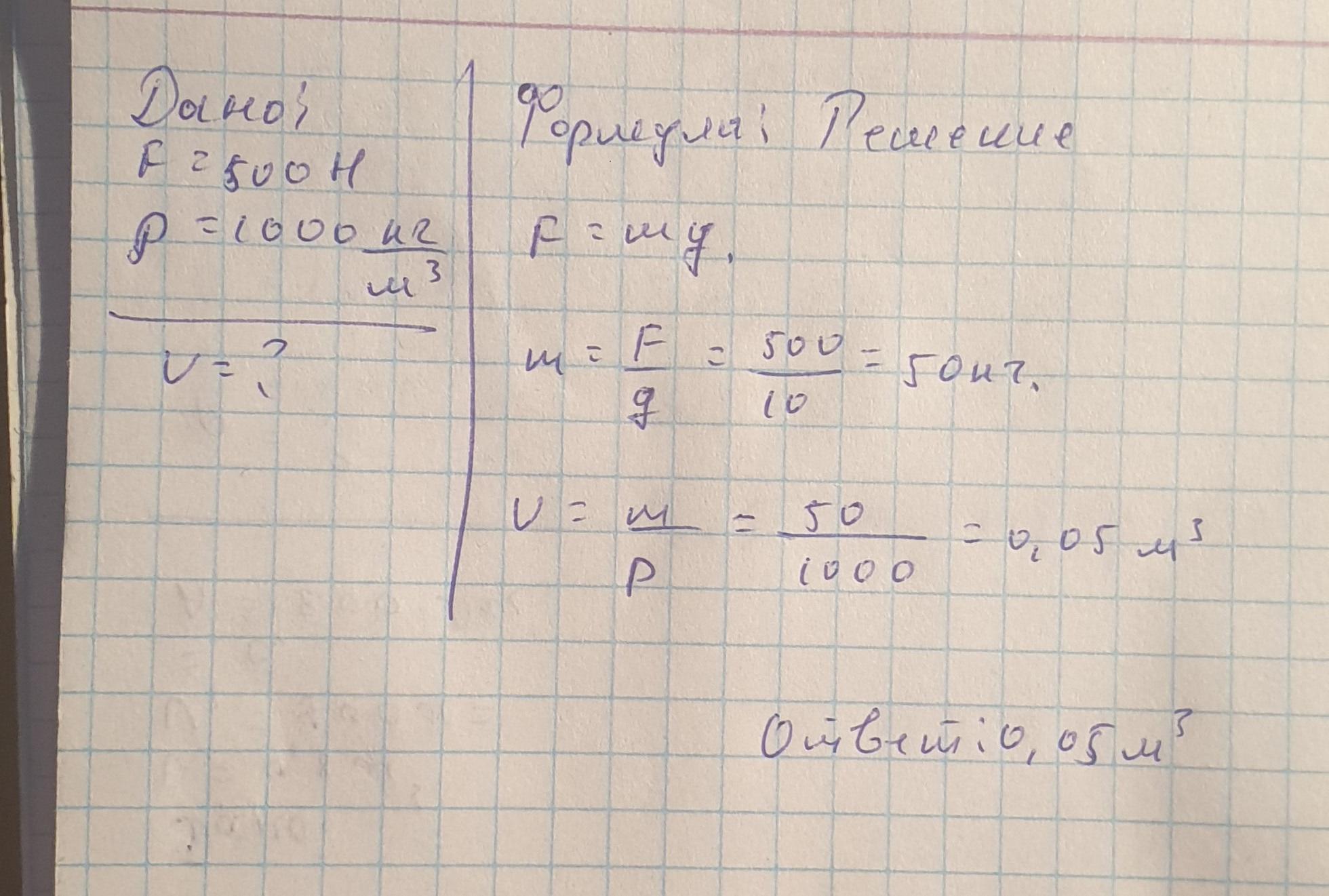 Какой объем керосина находится в сосуде, если на него действует сила тяжести 500 Н? Массу сосуда не учитывать ( физика 7 класс )