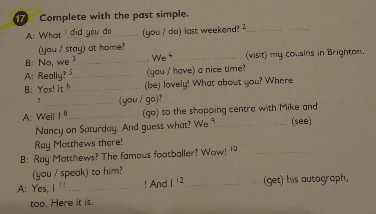 A:Well I went to the shopping...We saw Ray Watthews there.