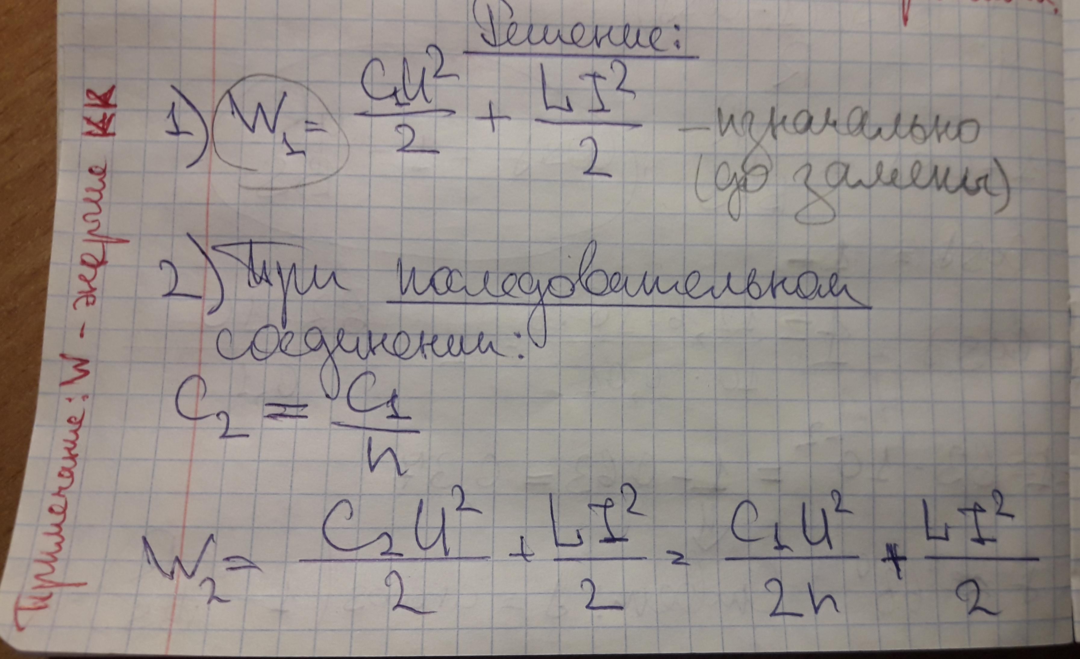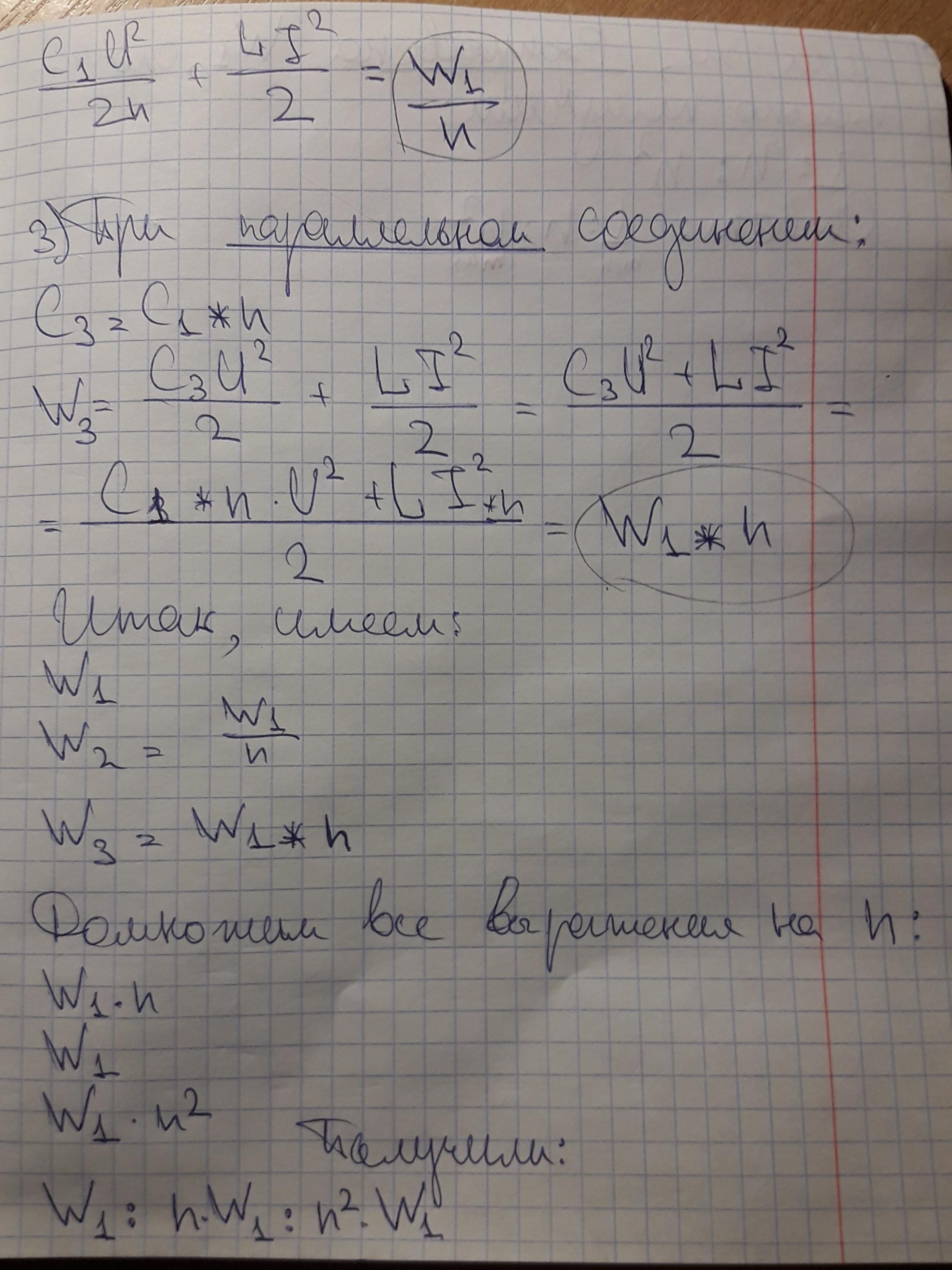 В колебательном контуре в одном случае заменили емкость на батарею из n последовательно соединенных таких же конденсаторов, а в другом - на n параллельно соединенных. Найти отношение ε1:ε2:ε3 энергий этих контуров и указать контуры с максимальной и минимальной энергиями.