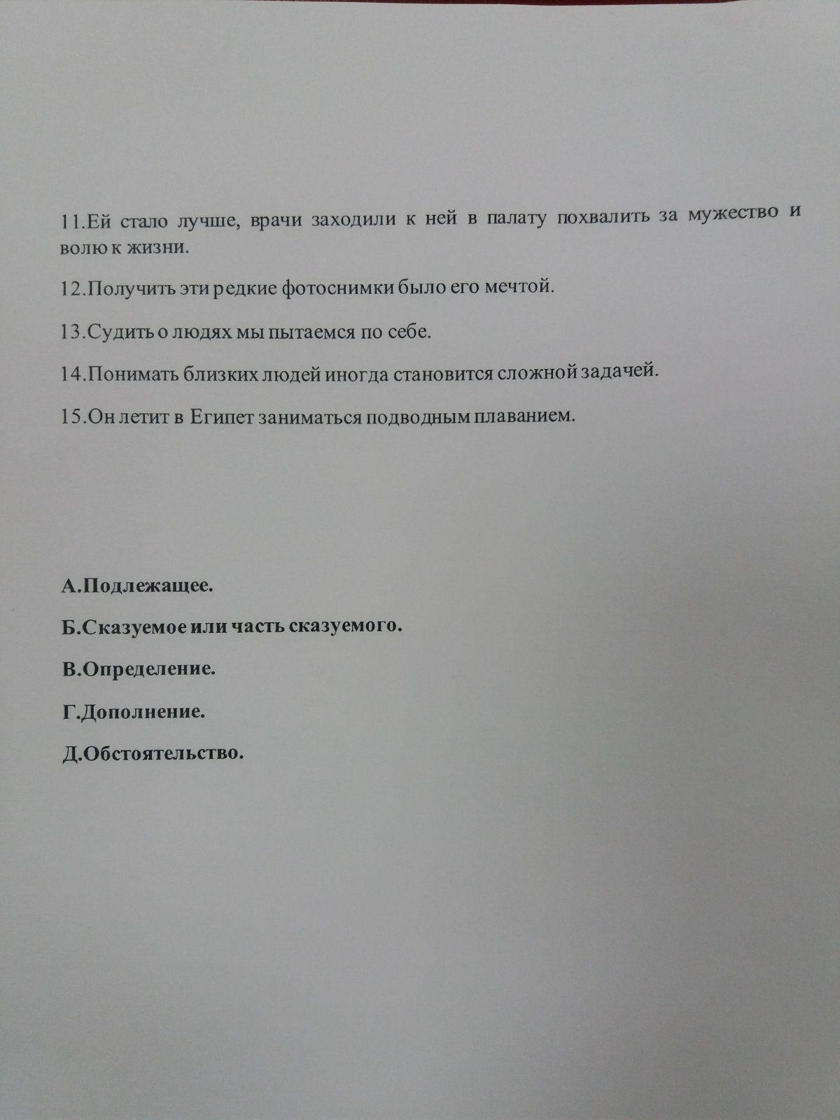 1 подлежащее 2 сказуемое 3 дополнение 4 обстоятельство 5 обстоятельство 6 сказуемое 7 сказуемое 8 подлежащее 9 сказуемое 10 сказуемое 15. Д
