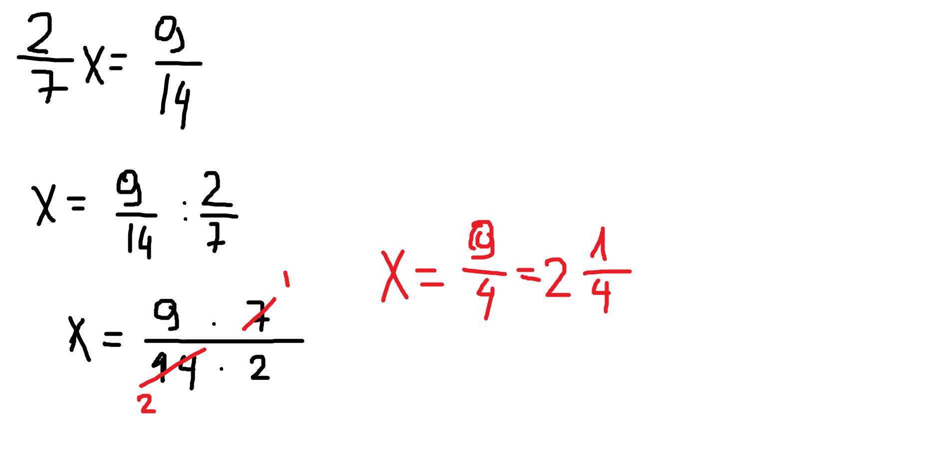 х = 9/14 : 2/7;