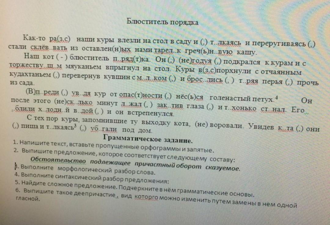 1. Как-то раз наши куры влезли на стол в саду и, толкаясь и переругиваясь, стали склёвывать из оставленных нами тарелок гречневую кашу. Наш кот - блюститель порядка. Он, негодуя, подкрался к курам и с торжествующим мяуканьем впрыгнул на стол. Куры вспорхнули с отчаянным кудахтаньем, перевернув кувшин с молоком, и бросились, теряя перья, прочь из сада. Впереди, уводя кур от опасности, несся голенастый петух. Он после этого несколько минут лежал, закатив глаза, и тихонько стонал. Его облили холодной водой, и он встрепенулся. С тех пор куры, запомнившие ту выходку кота, не воровали. Увидев кота, они, пища и толкаясь, убегали под дом.