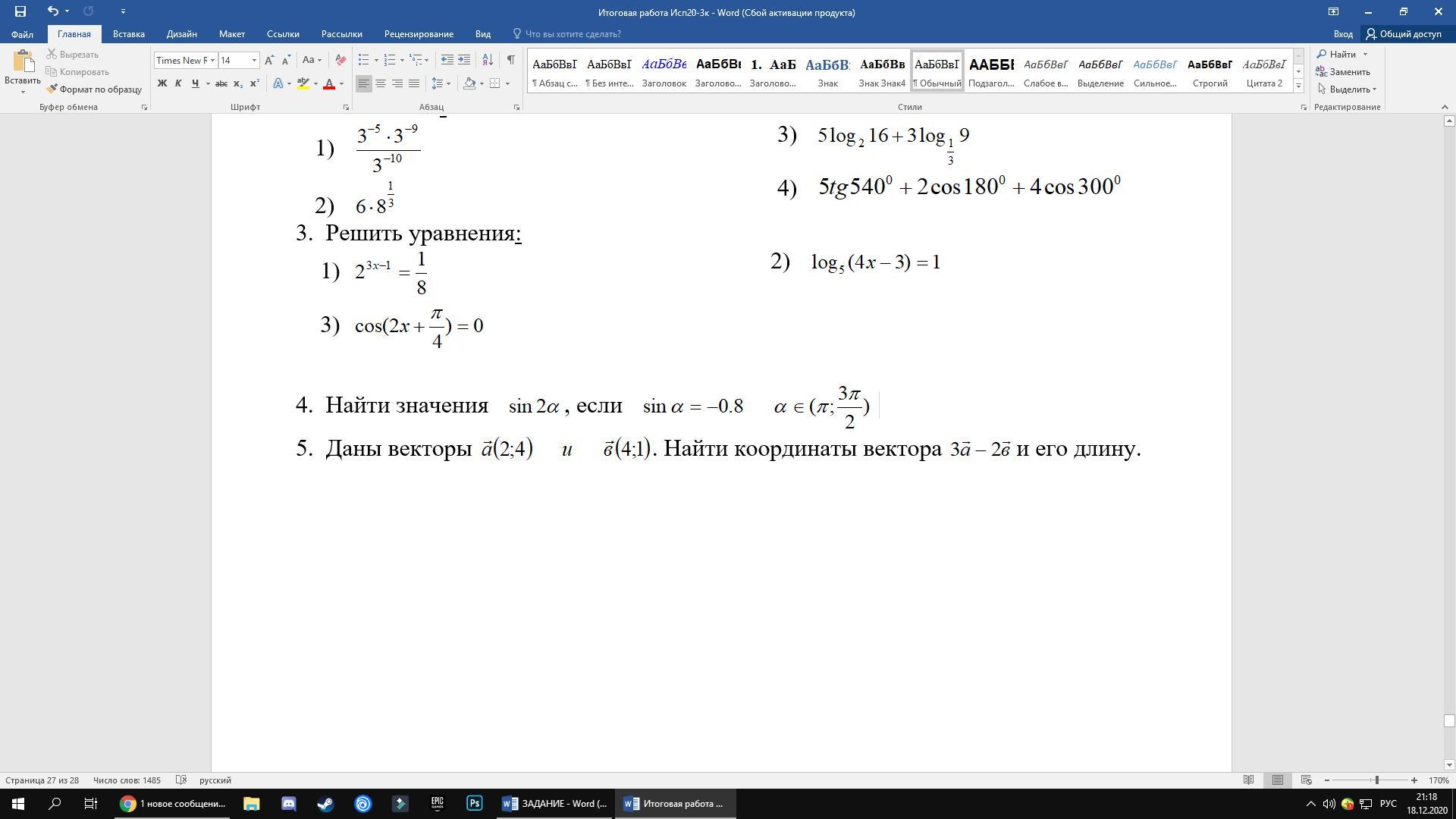 sin2a = -1.6cosa = -1.6 × (-0.6) = 0.96