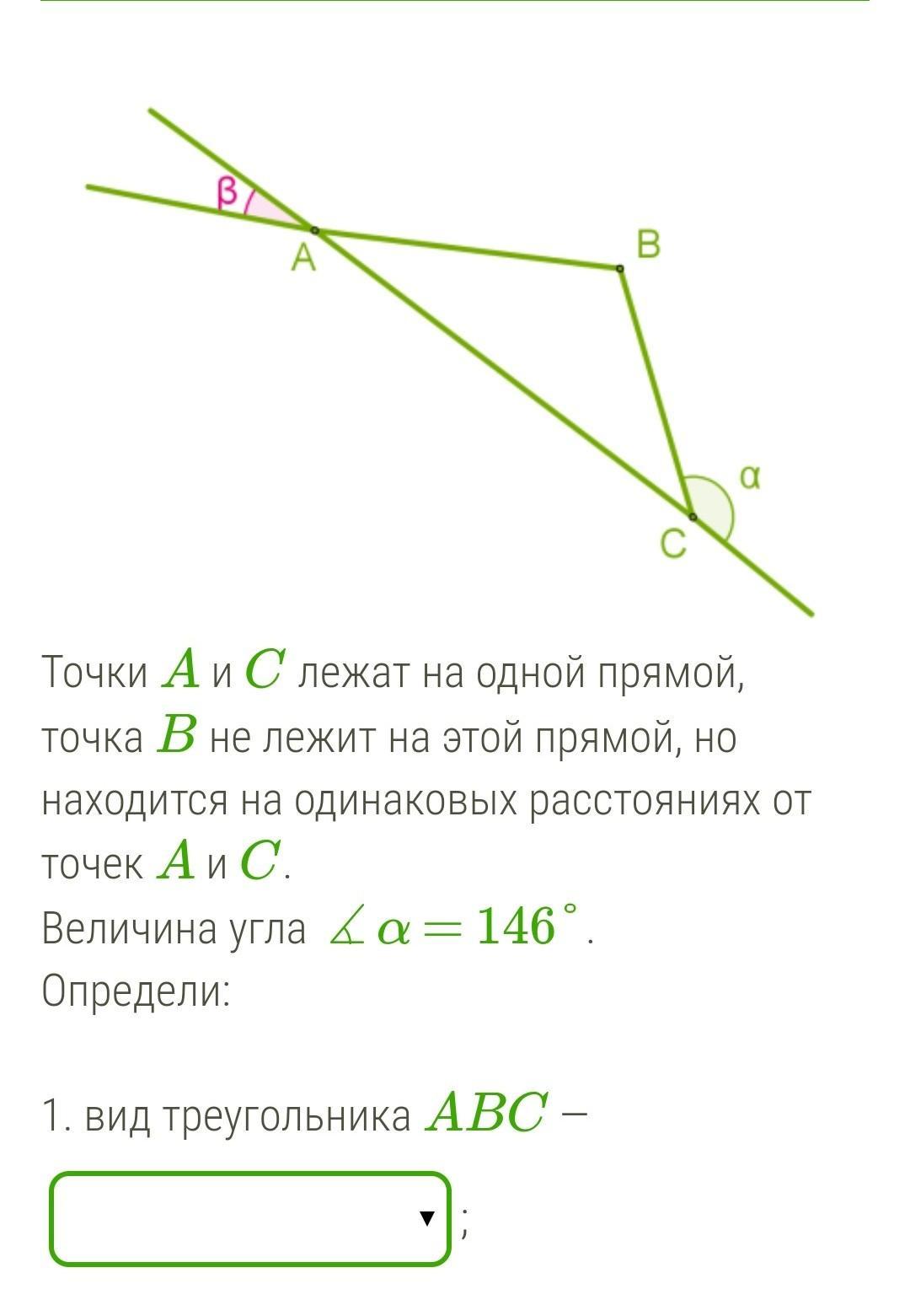 1. вид треугольника ABC — ;