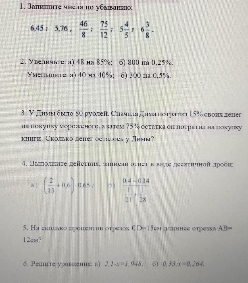 6. Решите уравнения: а) 2,1-x=1,948; б) 0, 33:х=0, 264.