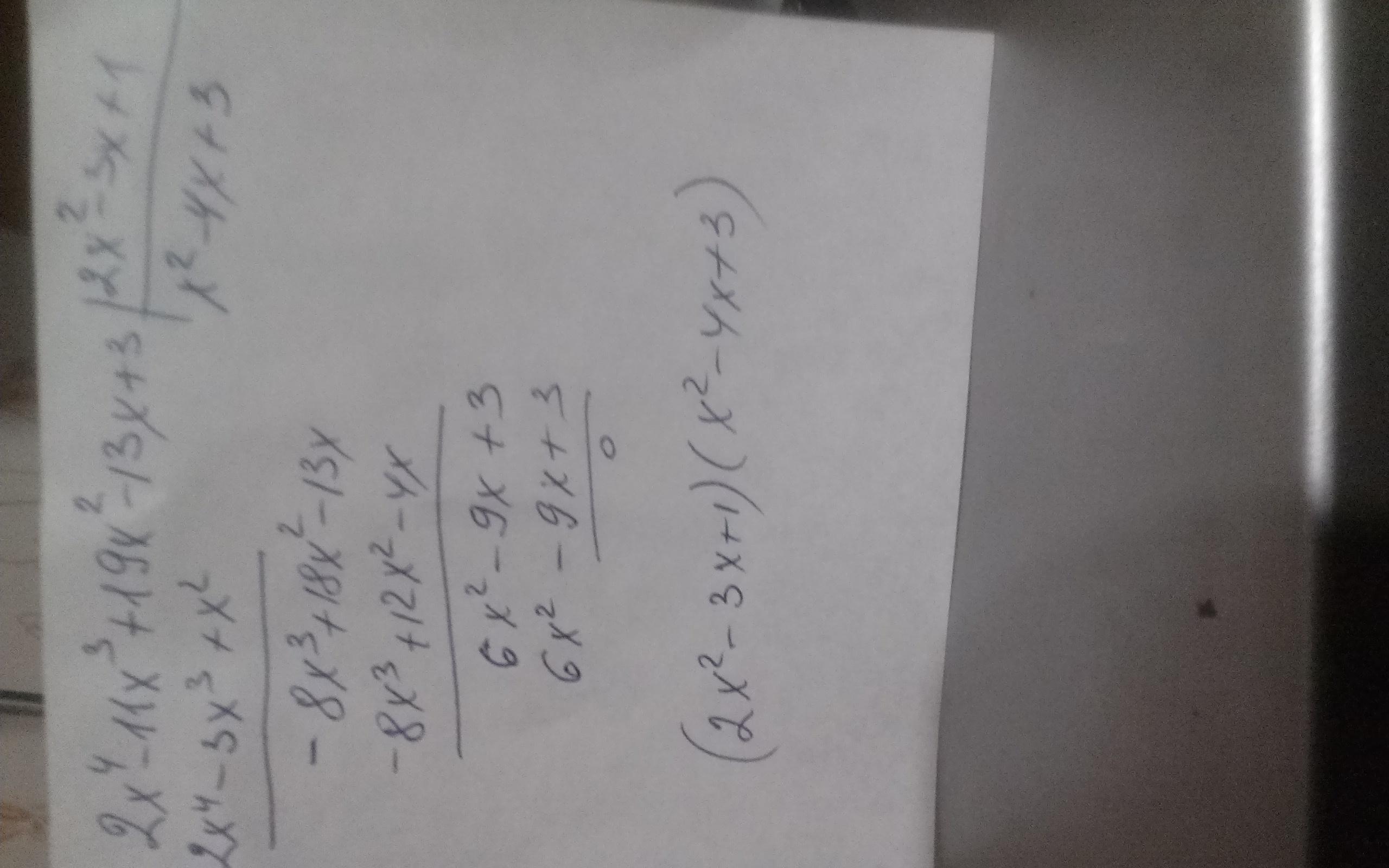 3)Разделите многочлен 2х^4-11х^3+19х^2-13х+3 на 2х^2-3х+1