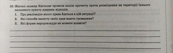 У даному випадку жителі села Квіткове вирішили захищати своє конституційне право на безпечне для життя і здоров’я довкілля (ст. 50 Конституції України). З цією метою вони скористалися конститу-ційним правом збиратися мирно, без зброї і проводити збори, мітинги, походи і демонстрації (ст. 39 Конституції України).