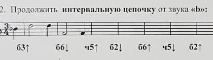 СРОЧНО! Продолжить интервальную цепочку от звука b : б3, б6, ч5, б2, б6, ч5, б2, б7, б6, ч4