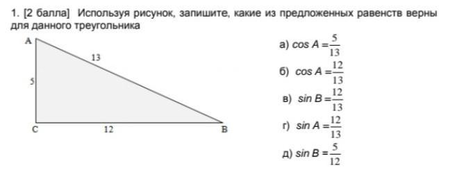 б) cos A=12/13 - неправильно; это - синус угла А;