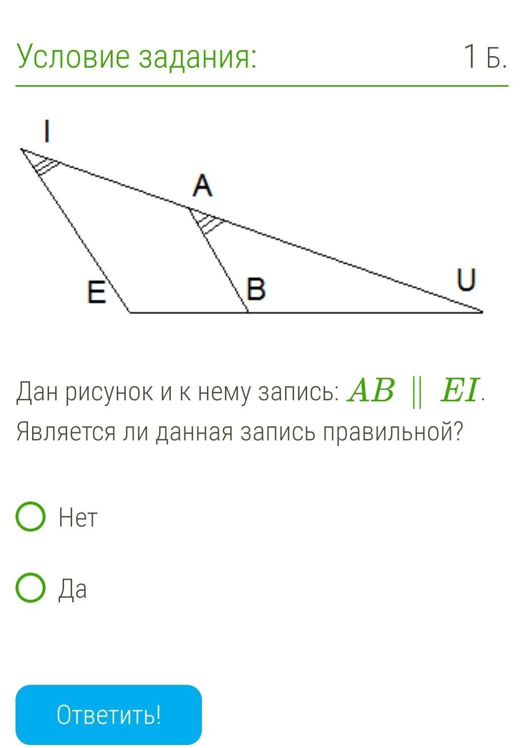 ∠IEU=∠ABU-по условию.Эти углы соответственные при прямых IE , AB и секущей EU⇒AB║IE