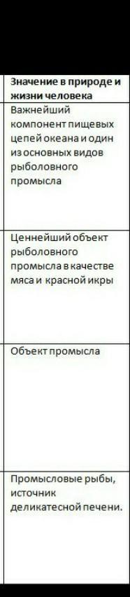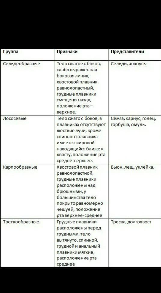 Заполните таблицу, по параграфу "Тип Рыбы" 7 класс