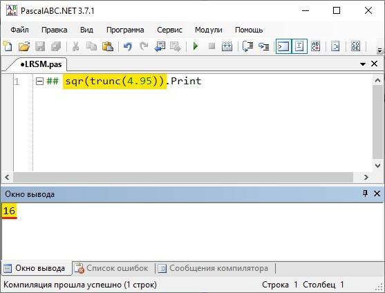 Тогда, sqr(trunc(4.95)) = sqr(4) = 4² = 16.