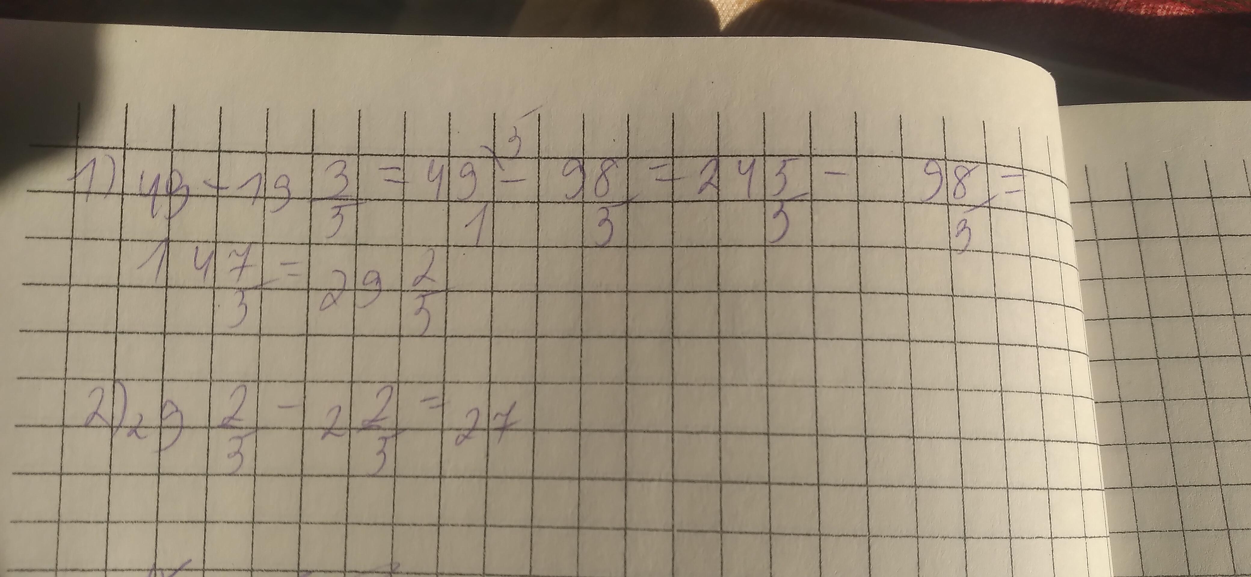1) 48 5/5 - 19 3/5 = 29 2/5