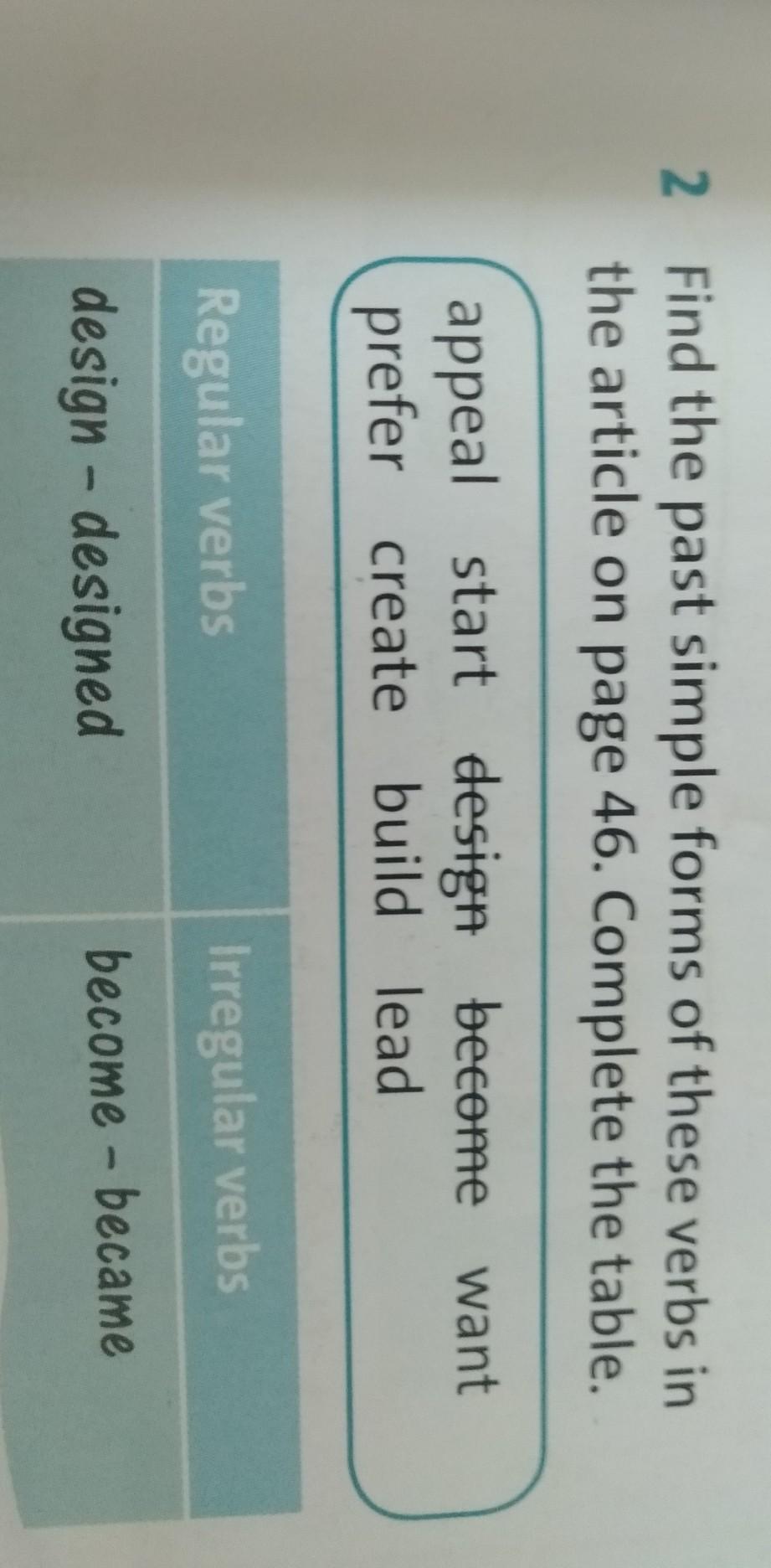 2 Find the past simple forms of these verbs in
