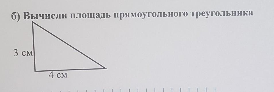 Ответ:Площадь прямоугольного треугольника равна S = ab/2. В вашем случае 3*4/2= 6 см квадратных