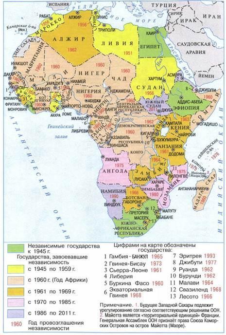 На политической карте Африки в настоящее время (на 2021 год) 54 независимых государств.