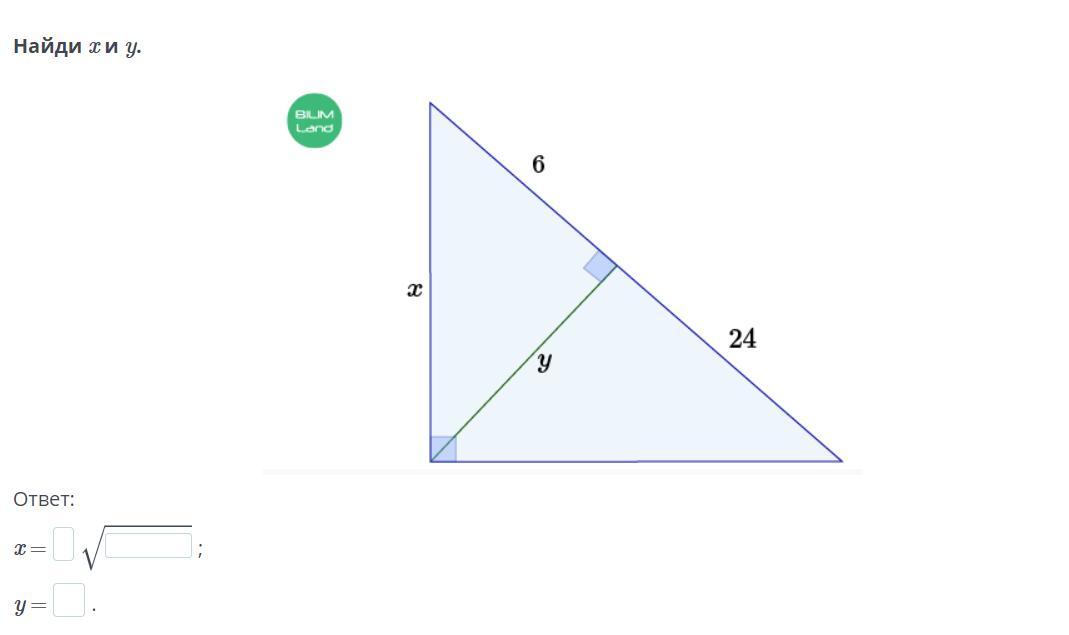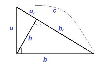 В прямоугольном треугольнике выполняются следующие соотношения: