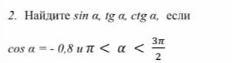 угол принадлежит 3 четверти => синус отрицательный, тангенс и котангенс положительные.