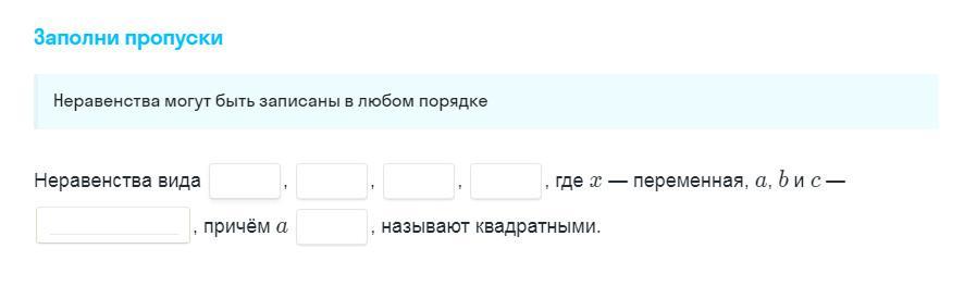 Ответ: Квадратичной функцией называется функция, которую можно задать формулой вида y=ax^2+bx+c, где x — независимая переменная, a, b, c — некоторые числа, причем a≠0.