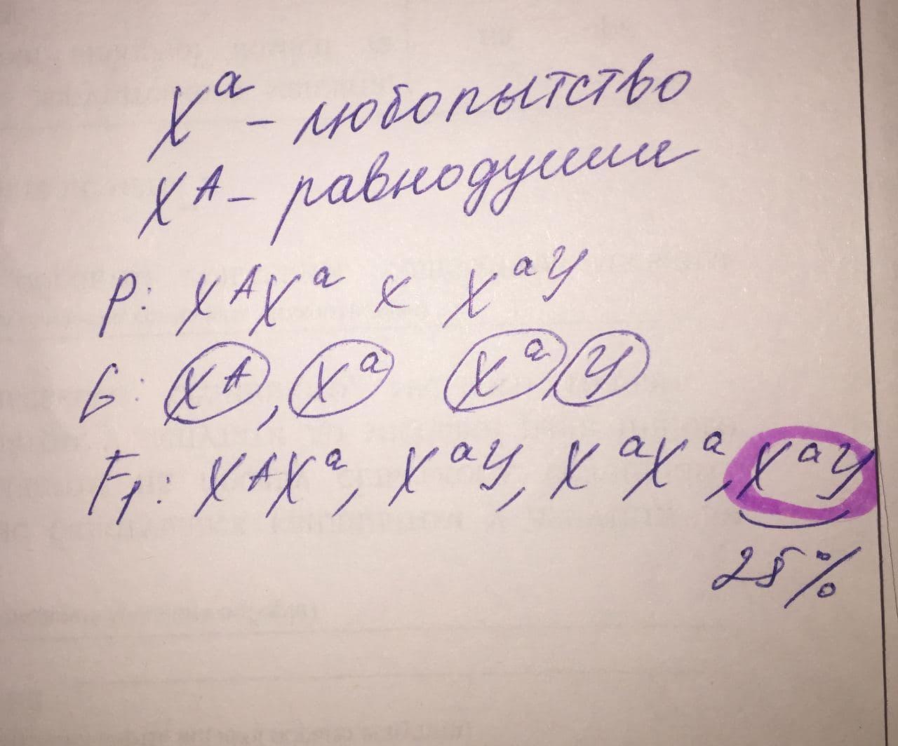 Вероятность того, что сыновья от такого брака будут людьми любопытными 50%. На фото я допустила неточность... написано 25% - это процент от всех детей (и сыновей и дочерей). Если же брать сколько будет именно сыновей любопытными, то это 50%.