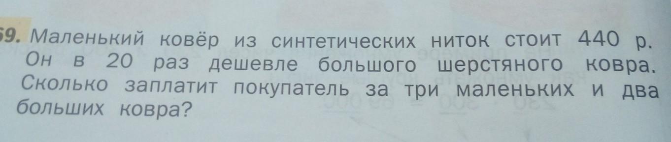 2) 440 • 3 = 1320(р)- цена 3 маленьких ковров