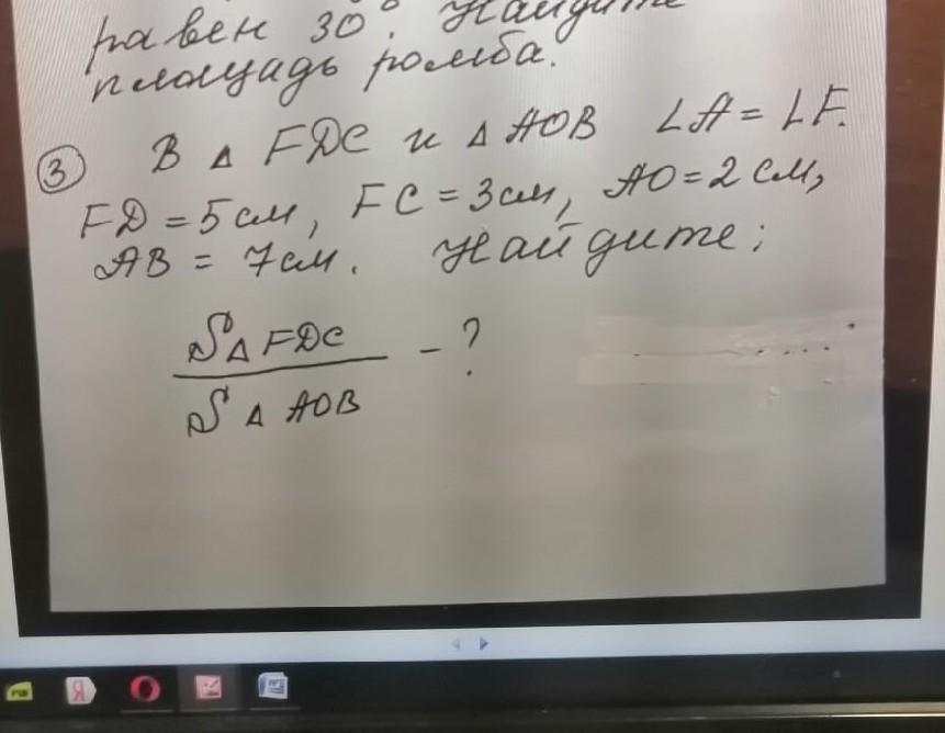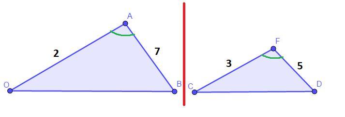 Дано: Угол A = угол F, FD = 5 см, FC = 3 см, AO = 2 см, AB = 7 см