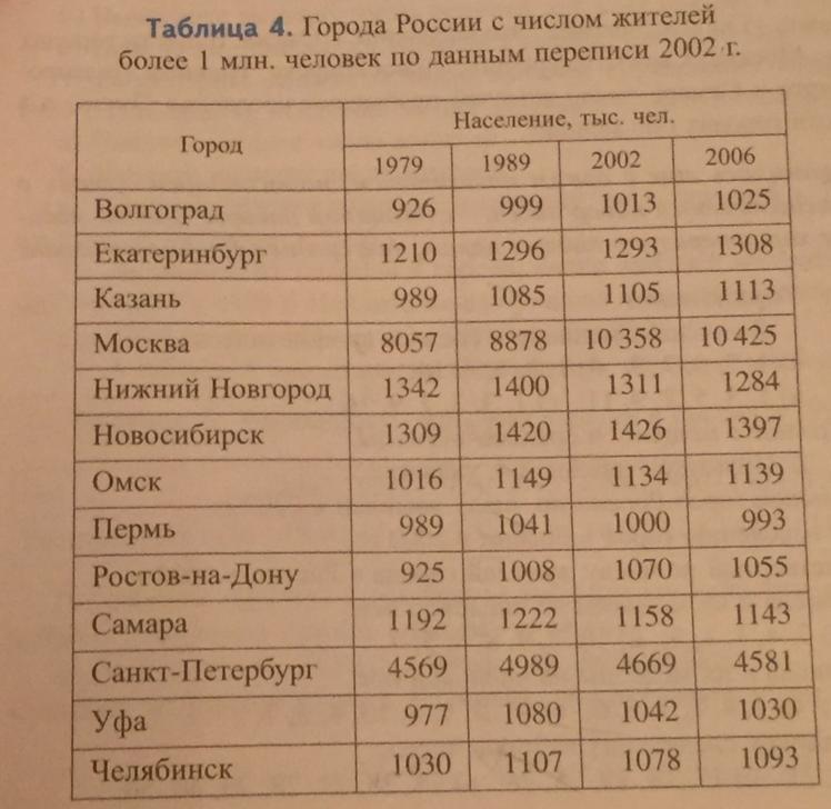 Рассмотрите данные о числе жителей крупнейших городов России (таблица 4),исключив из них Москву и Санкт-Петербург,как города имеющие федеральный статус.