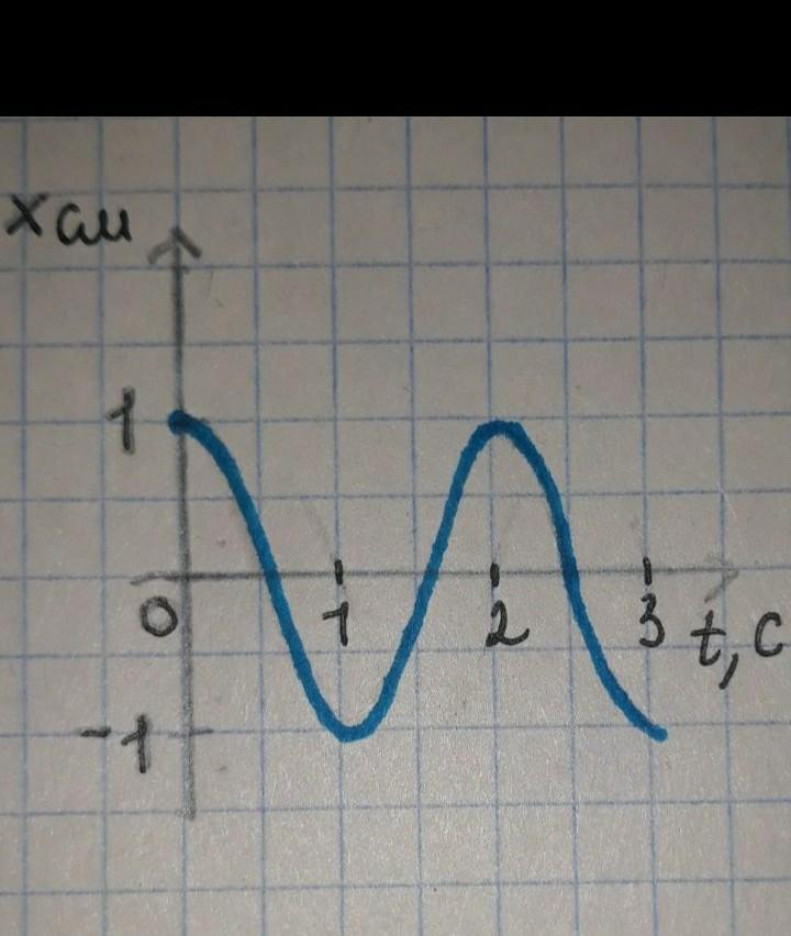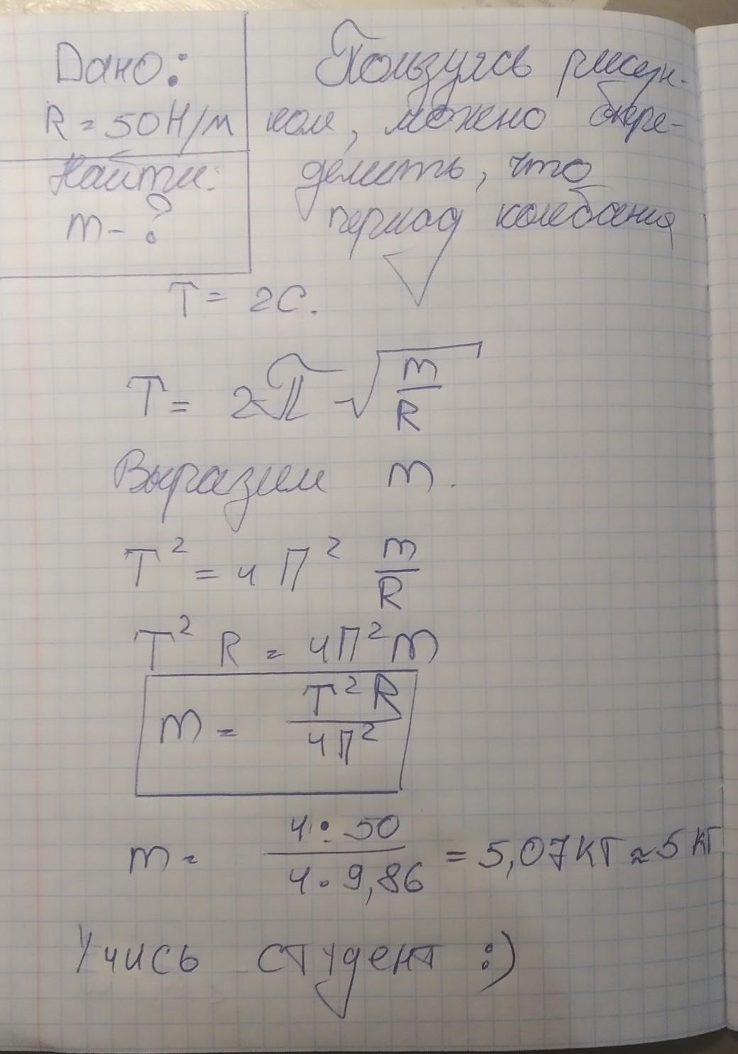 на пружине закреплена гирька совершающая свободные колебания. жесткость пружины 50 Н/м. Зависимость координаты x гирьки от времени t представлена на рисунке. Найдите массу гирьки.