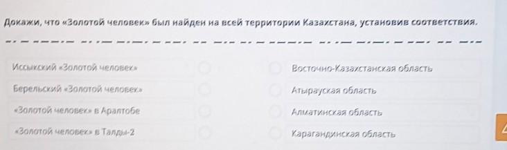 Докажи, что «Золотой человек» был найден на всей территории Казахстана, установив соответствия.