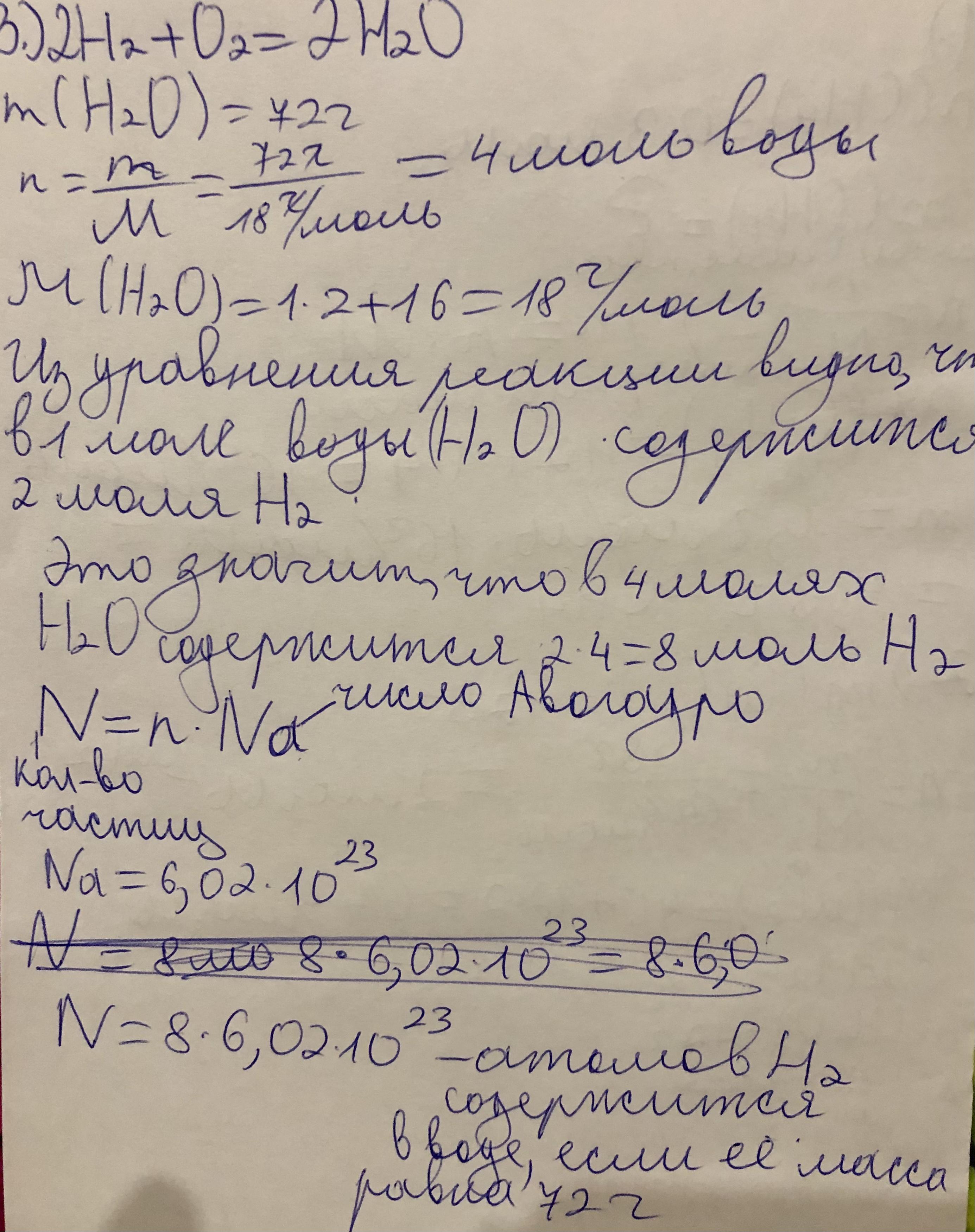 3. N=8*6,02*10^23 атомов Н2 содержится в воде, если её масса равна 72г