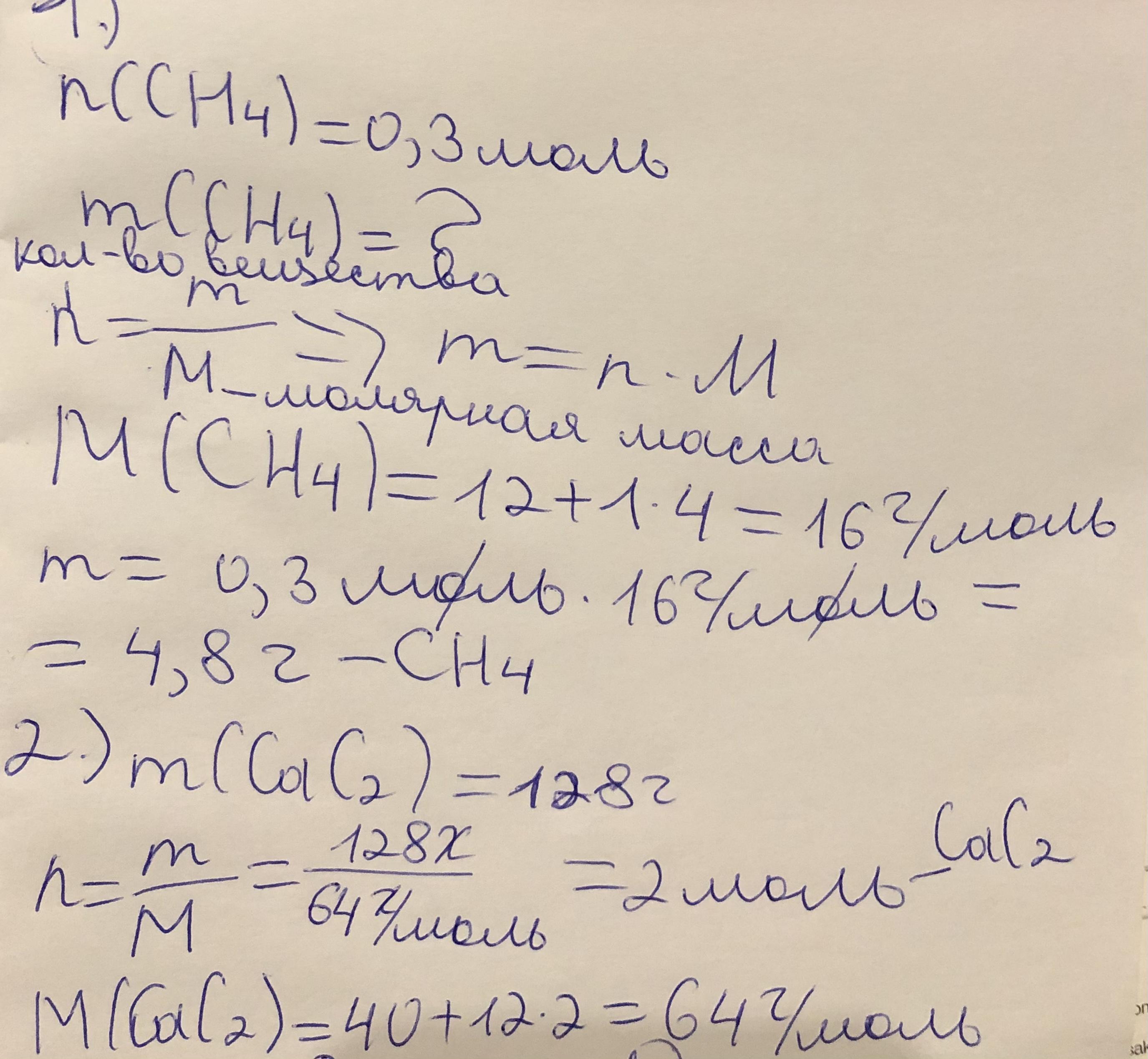 2) обчислити кількість речовини CaC2, якщо її маса дорівнює 128 г