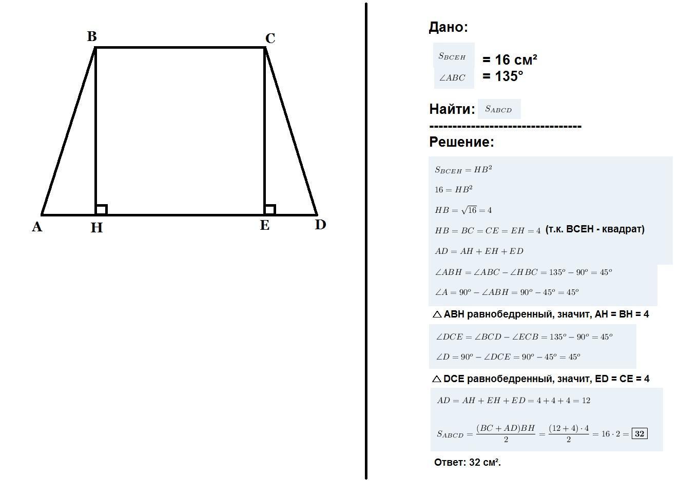 отсекает квадрат, площадь которого равна 16 см2. Найдите площадь