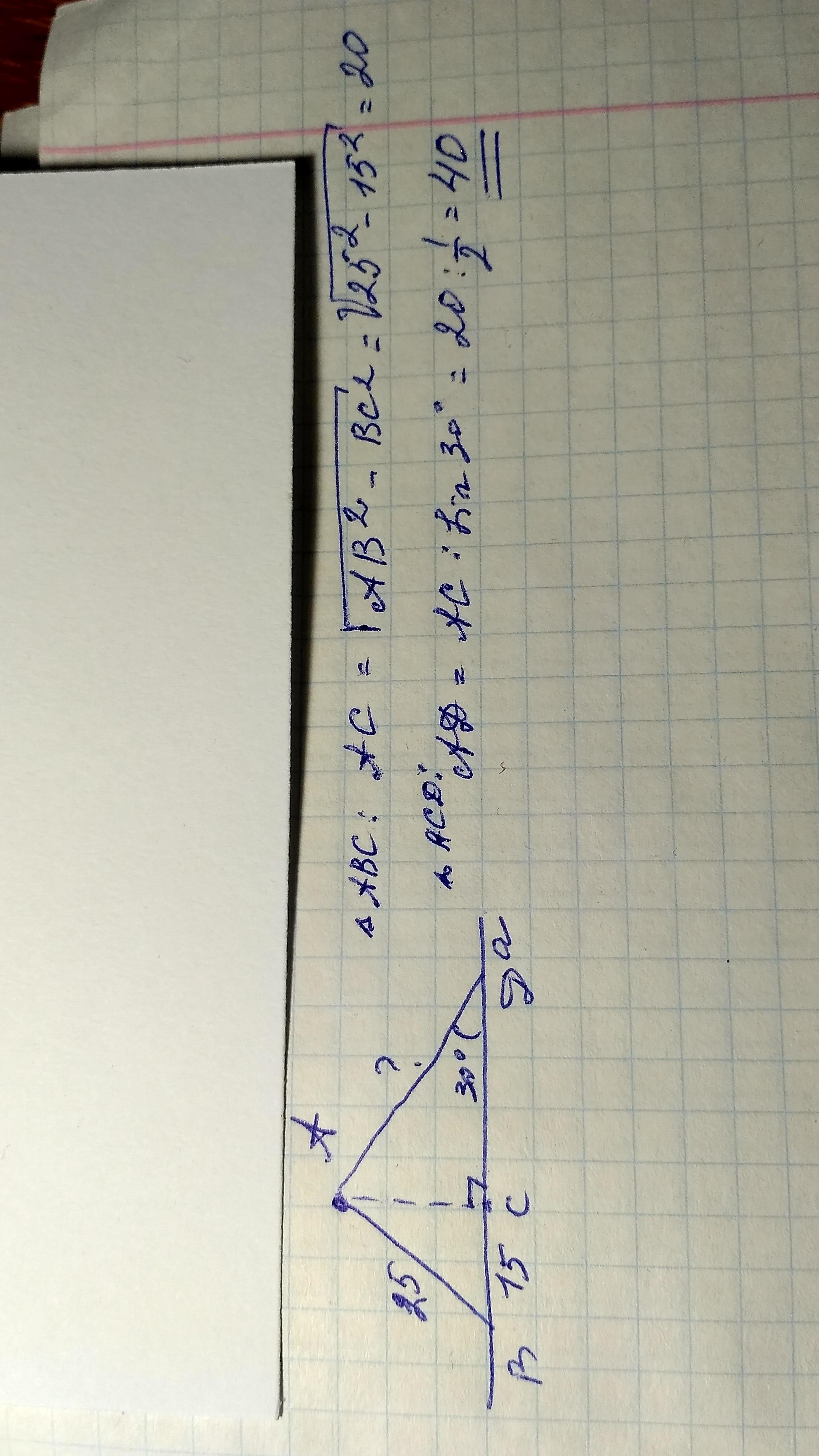 Із точки до прямоїпроведено дві похилі.Довжина одніеї з них дорівнює 25 см, а довжина її проекції на цю пряму -15см.Знайдіть довжину другої похилої, якщо Вона утворюе з прямою кут 30°.