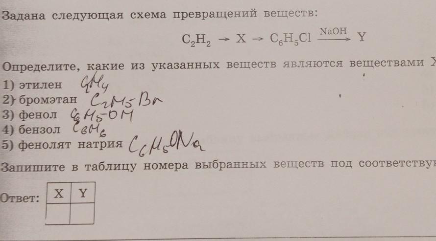 задана следующая схема превращений веществ, определите какие из указанных веществ являются вещетвами х и у