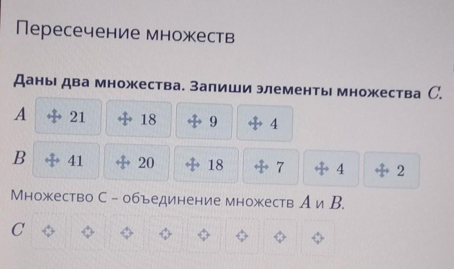 C = А∪В = {21; 18; 9; 4; 41; 20; 7; 2}.
