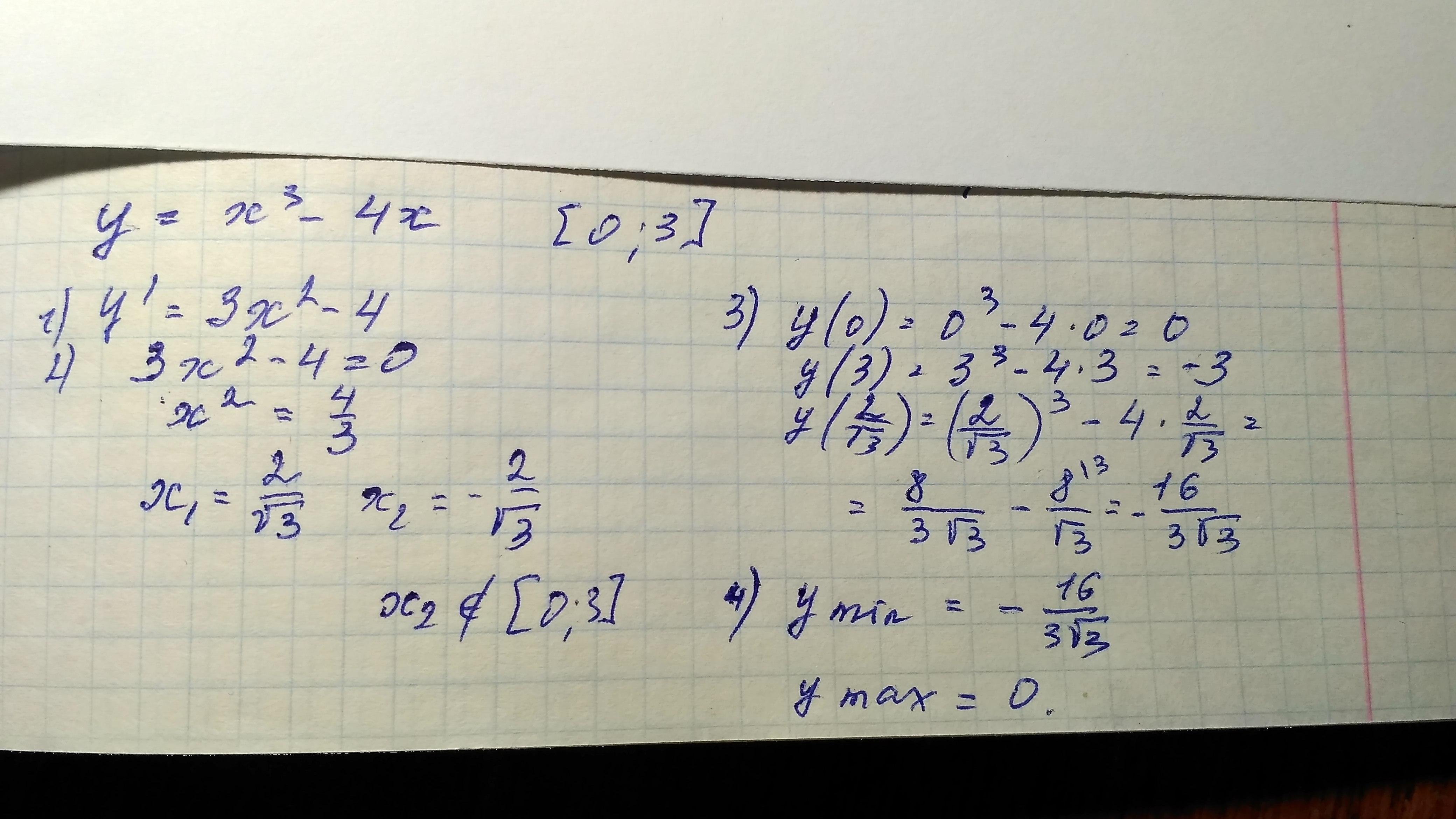 проміжку: y = x^3 – 4x, [0; 3]. ПОМОГИТЕ!!!!!