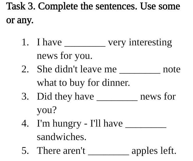some ставится только в положительных предложениях, а аny-в отрицательных и вопросительных))