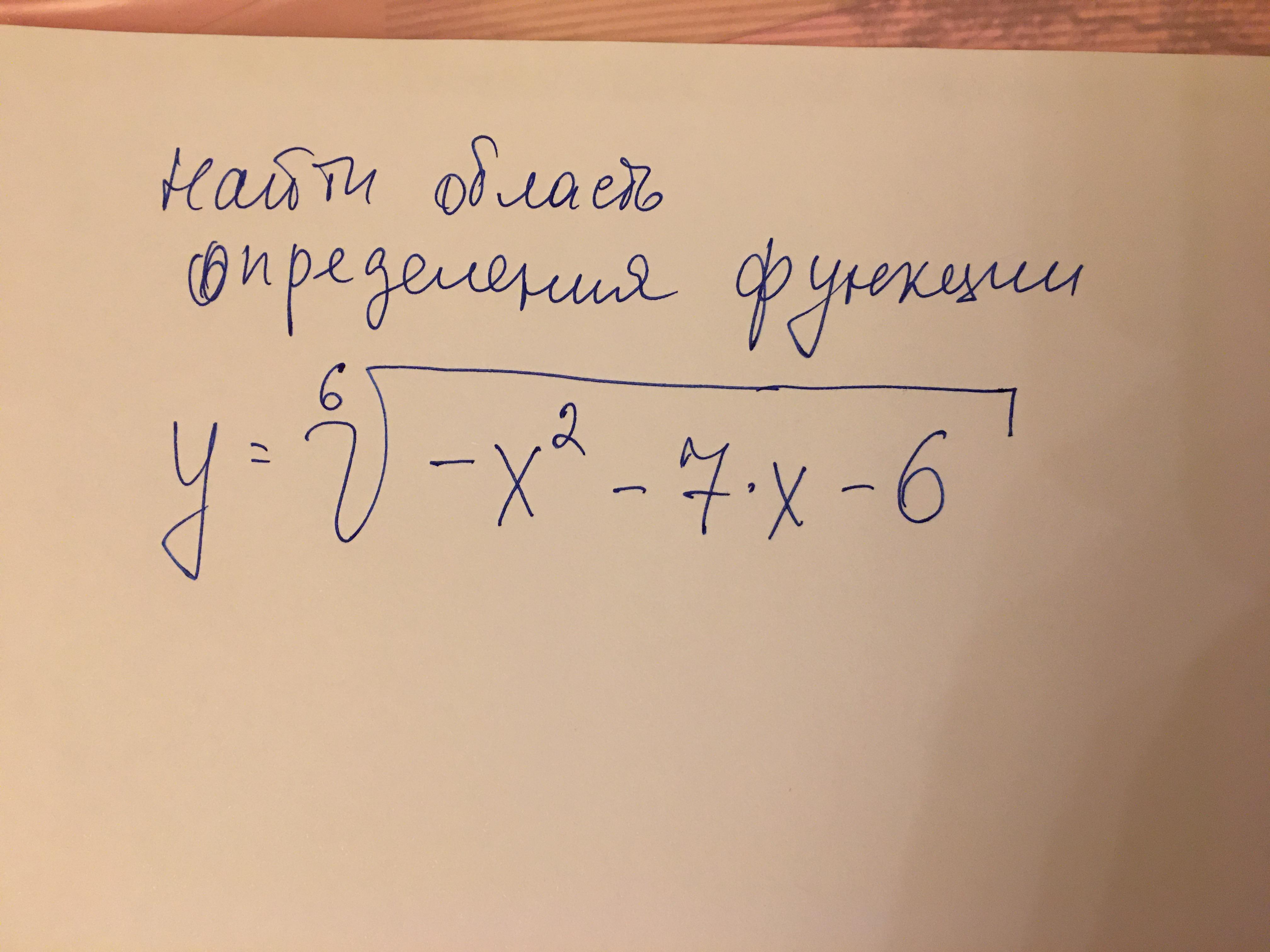 найдите область определения функции y=(-x^2-7x-6)^1/6