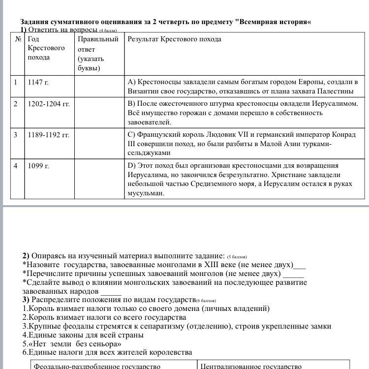 3-В 13 веке на огромной территории Евразии образовалось монголо-татарское господство. Многолетний гнёт со стороны завоевателей разрушил хозяйство этих земель, города опустели, были уничтожены исторические памятники, пришла в упадок культура. Монголо-татарское нашествие надолго затормозило развитие феодальных отношений на завоеванных территориях