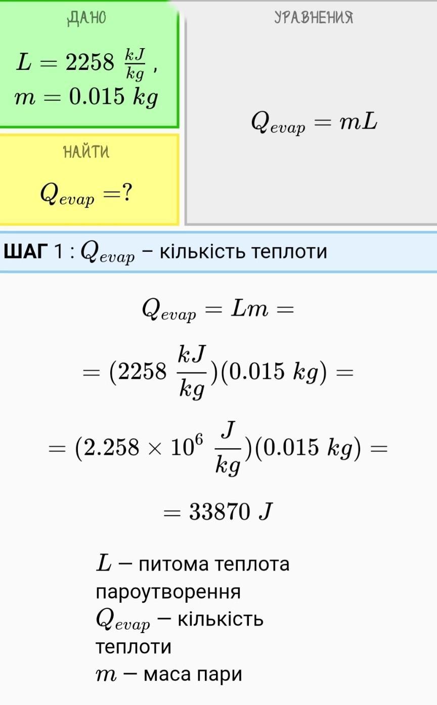 Яку кількість теплоти затратили, щоб перетворити в пару 15г води, взятої при температурі кипіння?