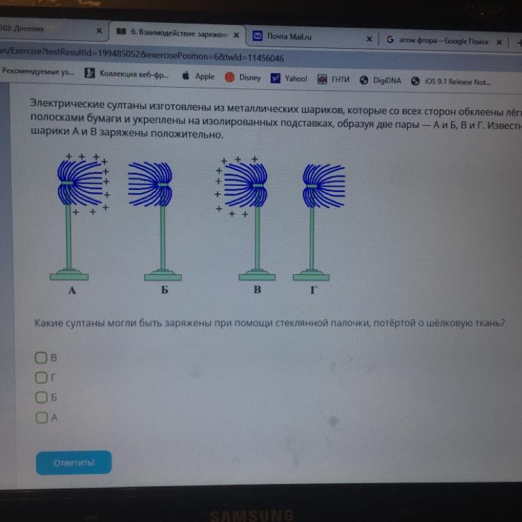 Какие султаны могли быть заряжены при помощи стеклянной палочки, потертой о шёлковую ткань?