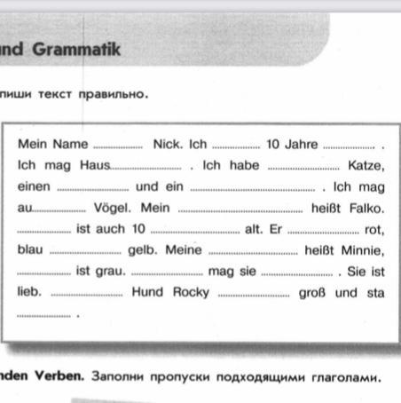 Mein Name ist Nick. Ich bin 10 Jahre alt. Ich mag Haustiere. Ich habe eine Katze, einen Hund und ein Kaninchen. Ich mag auch Vögel. Mein Papagei heißt Falko. Er ist auch 10 Jahre alt. Er ist rot, blau und gelb. Meine Katze heißt Minnie. Sie ist grau. Ich mag sie sehr .Sie ist lieb . Mein Hund Rocky ist groß und stark .